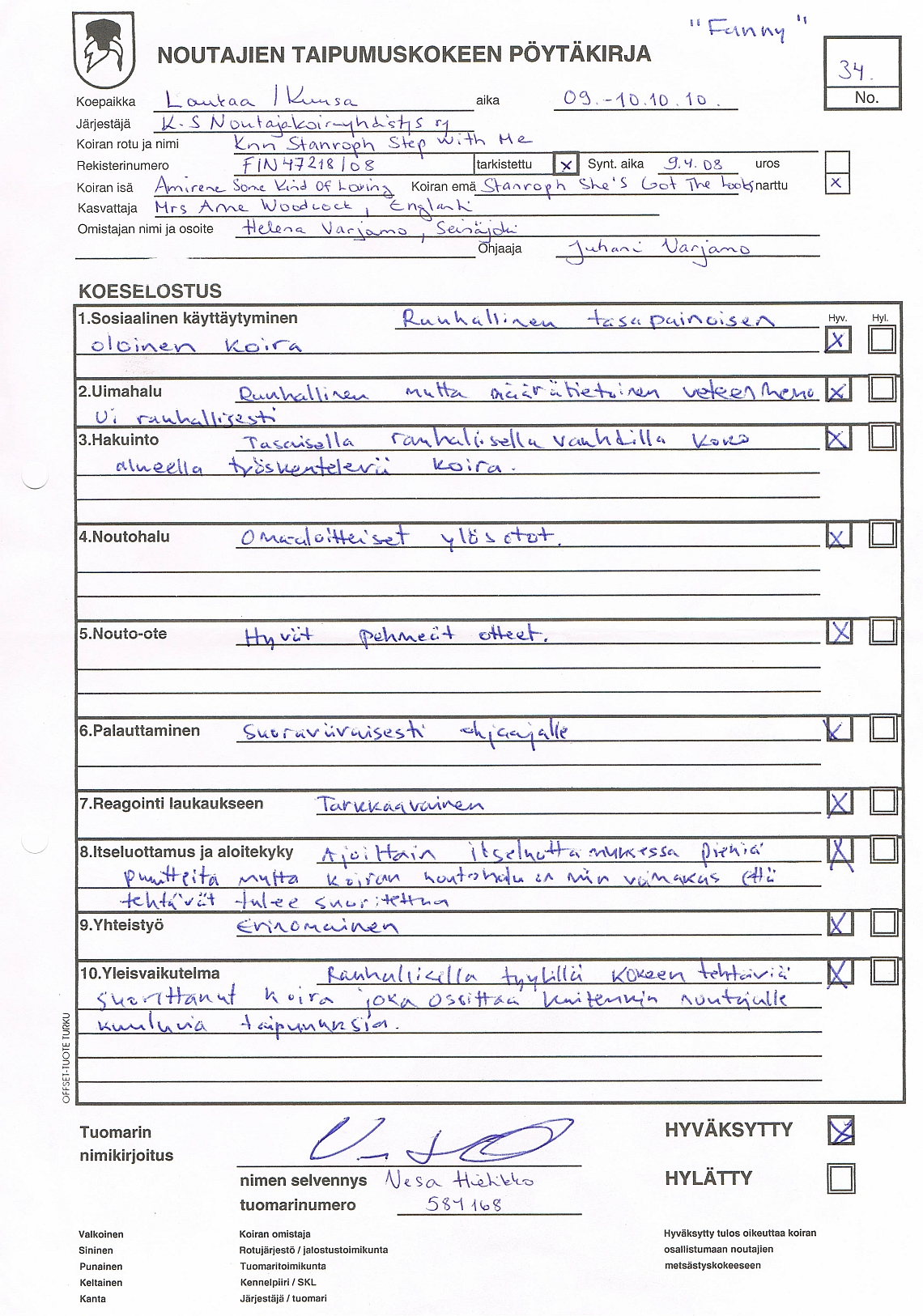 Kasvattaja: Mrs A Woodcock, Iso-Britannia, kennel